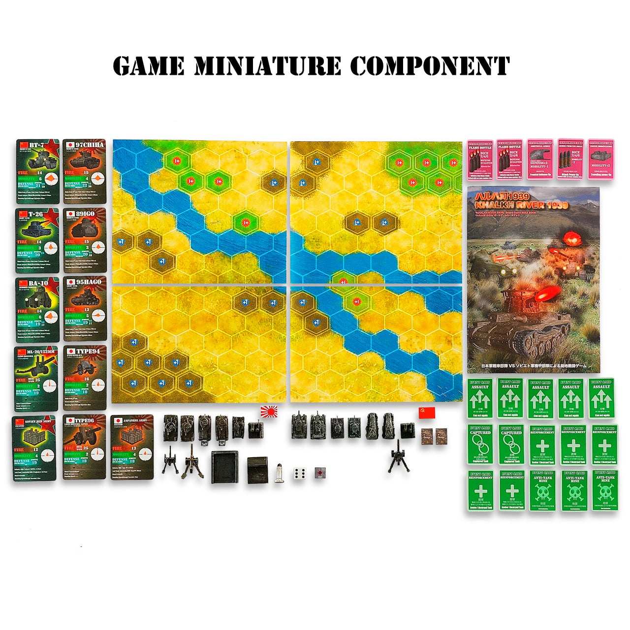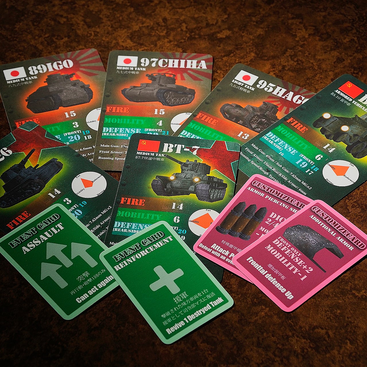 太平洋戦争前夜、1939年満州国境にてモンゴル・ソビエト連合軍と日本軍が国境線認識のずれにより、小競り合いから大規模な戦車戦闘へ発展。当時の戦車の性能が反映されたカード記載の攻撃力・機動力・防御力を考慮して、両軍の戦車部隊がハルハ河を挟み激突する。