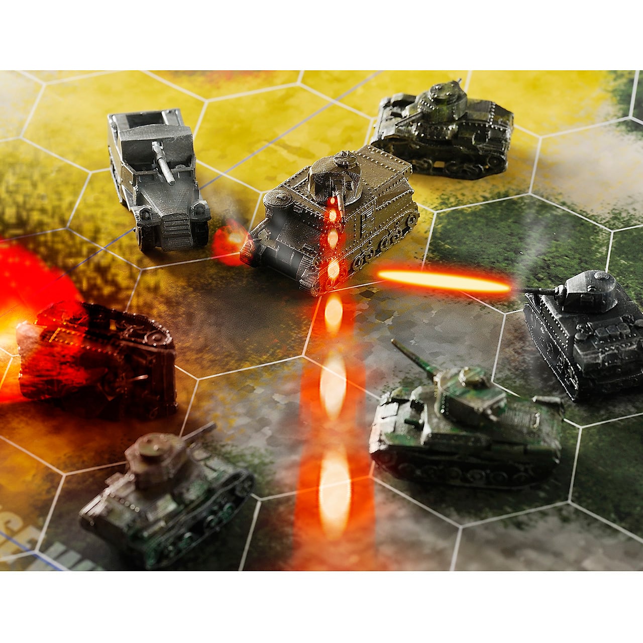 史実の戦車性能を活かしたスペックカードの能力を使い、砲撃距離と装甲厚を考えて砲撃します。