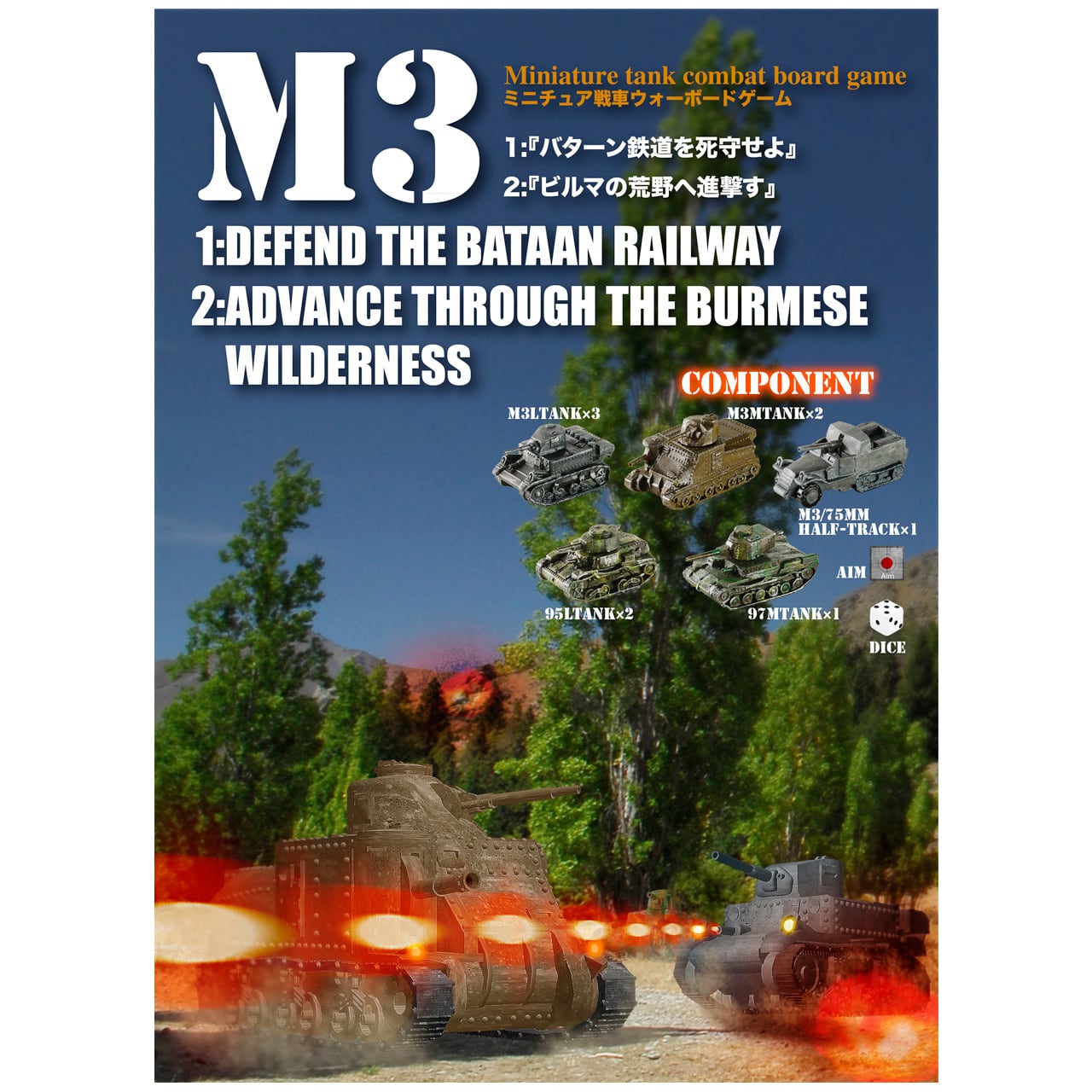 ビルマに侵攻した日本軍を阻むイギリス軍M3中戦車との死闘。「ビルマの荒野へ進撃す」の2本立てのボードゲームです。